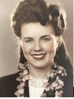 She was born on September 25, 1926, the daughter of Daisy L. and Ernest C. Bisgard, and grew up in Denver, CO. She was a graduate of Manual High School in Denver, Colorado, Class of ’45. She soon became a model and was crowned Flying Tiger Queen in 1945, and subsequently was named Miss Denver, 1945 and Miss Colorado, 1945. She attended Denver University and worked as a Bridal Consultant for the Denver Dry Goods Company.